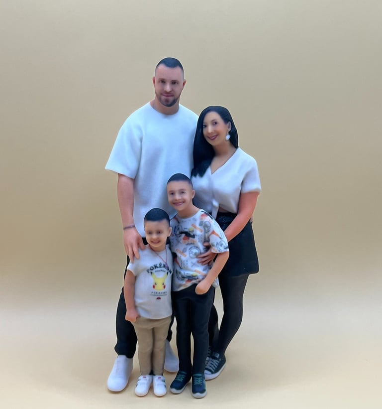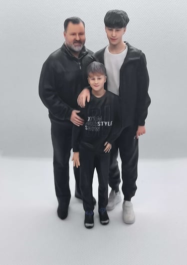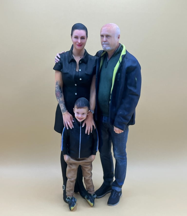 Custom 3D figurine prints capturing your loved ones perfectly.